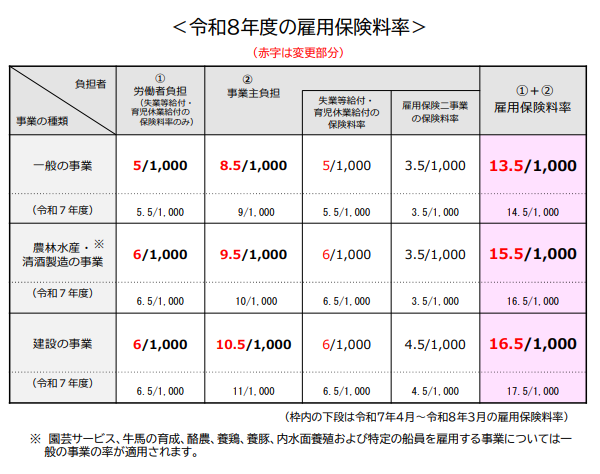 出典:厚生労働省_令和8(2026)年度 雇用保険料率のご案内