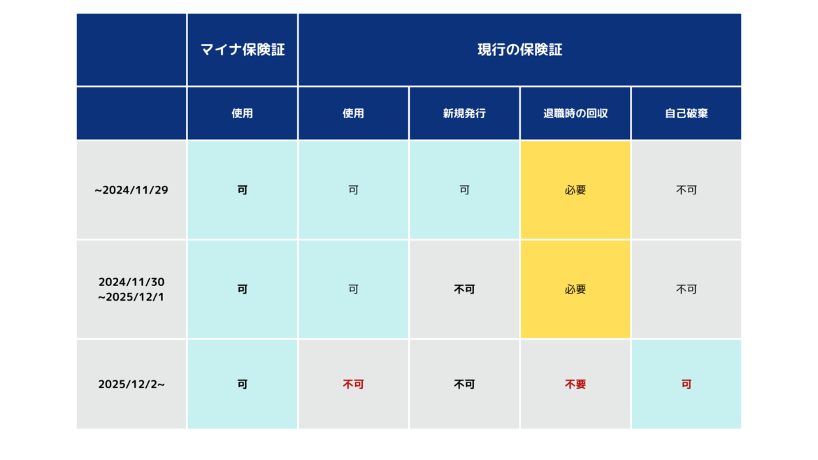2025年12月1日までに退職等で使用できなくなった保険証は、従来通り回収が必要です。