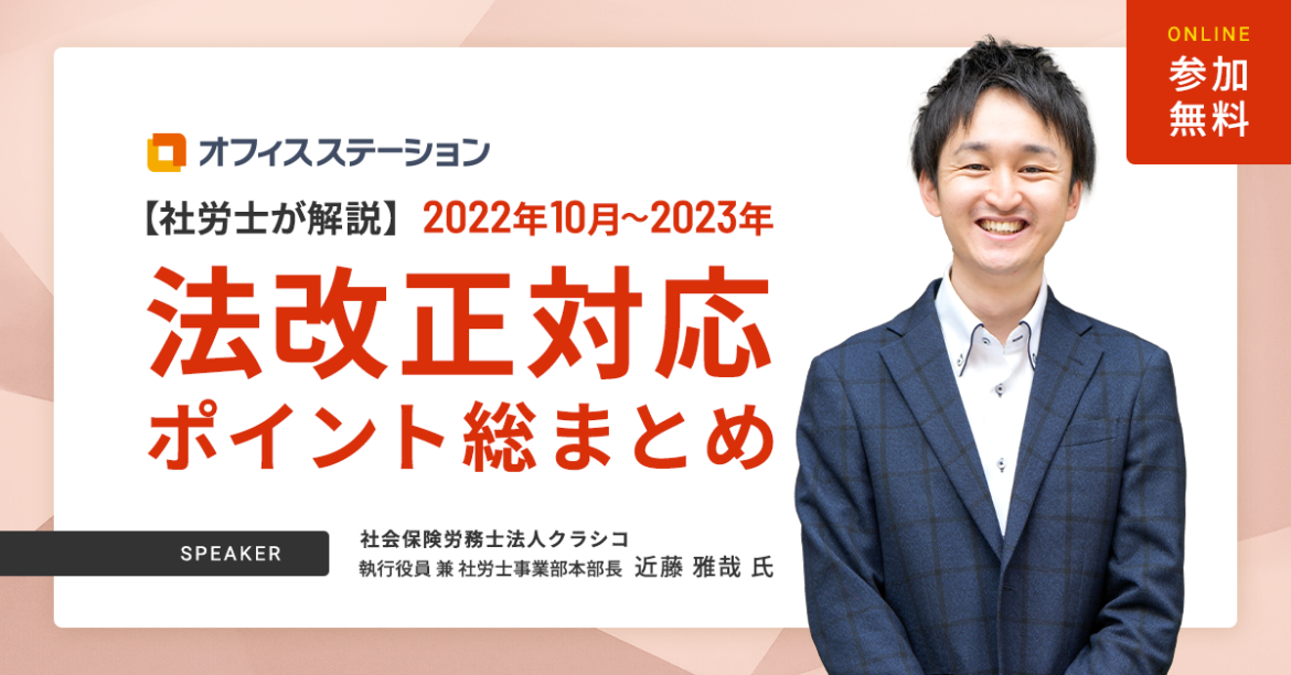 そこで、2022年10月から2023年末までの間におこなわれる労働法関連の法改正や、対応ポイントを、社会保険労務士法人クラシコの近藤が解説。
