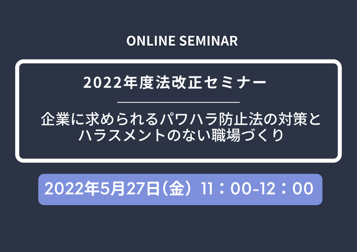 【5月27日開催】企業に求められるパワハラ防止法の対策とハラスメントのない職場づくり