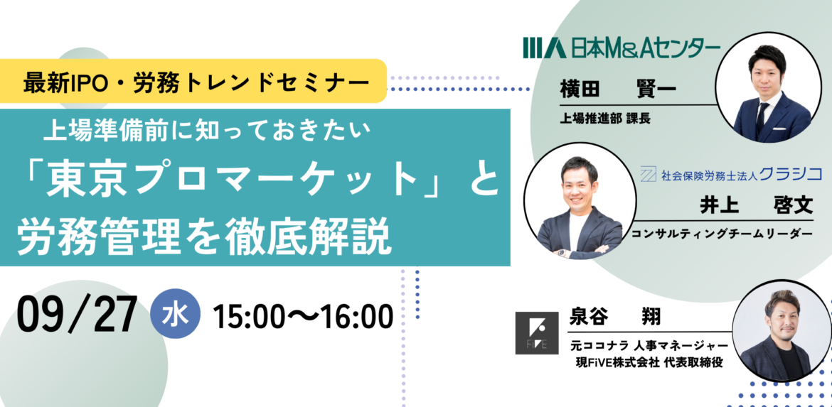【9月27日開催】最新IPO労務トレンドセミナー 上場準備前に知っておきたい「東京プロマーケット」と”労務管理”を徹底解説