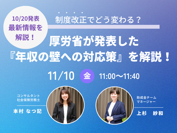 【11月10日開催】≪追加情報解説≫制度改正でどう変わる?厚労省が発表した『年収の壁への対応策』を徹底解説