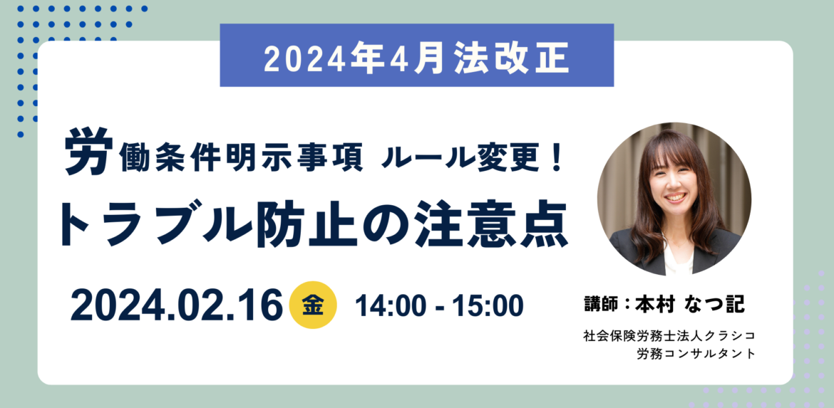 【2月16日開催:アーカイブ配信】2024年法改正 労働条件明示事項ルール変更!トラブル防止の注意点