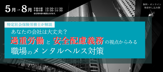 【8月21日開催】あなたの会社は大丈夫? 過重労働と安全配慮義務の視点からみる職場のメンタルヘルス対策