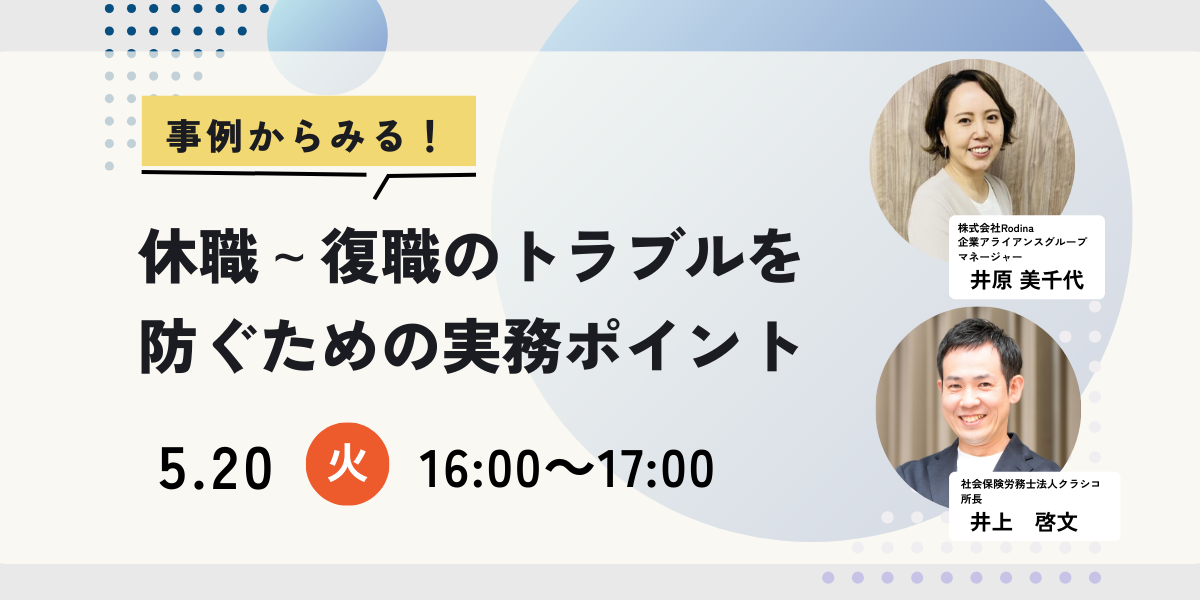 【5月20日開催】事例からみる!休職~復職のトラブルを防ぐための実務ポイント