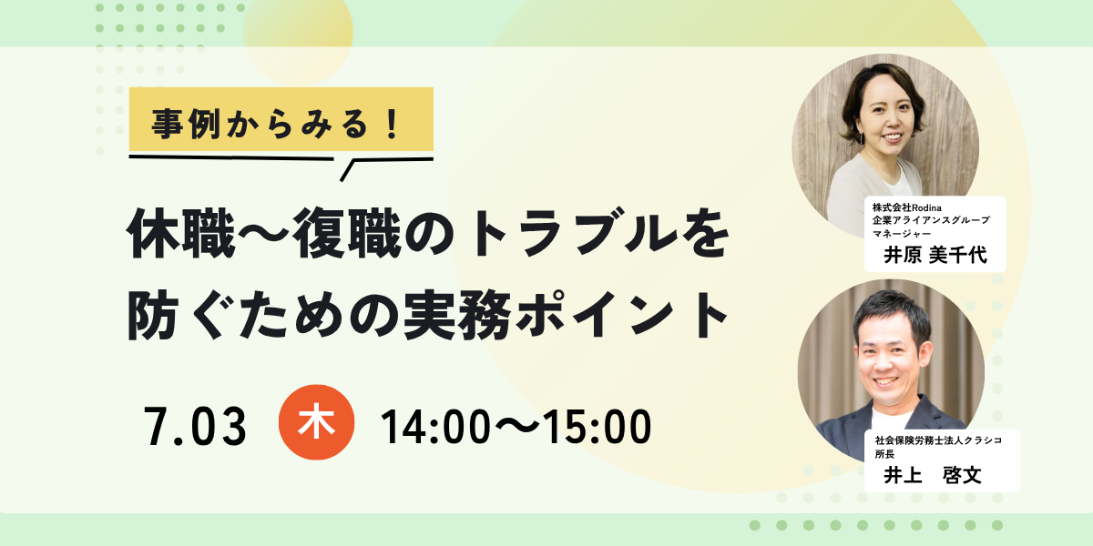【7月3日開催】事例からみる!休職~復職のトラブルを防ぐための実務ポイント