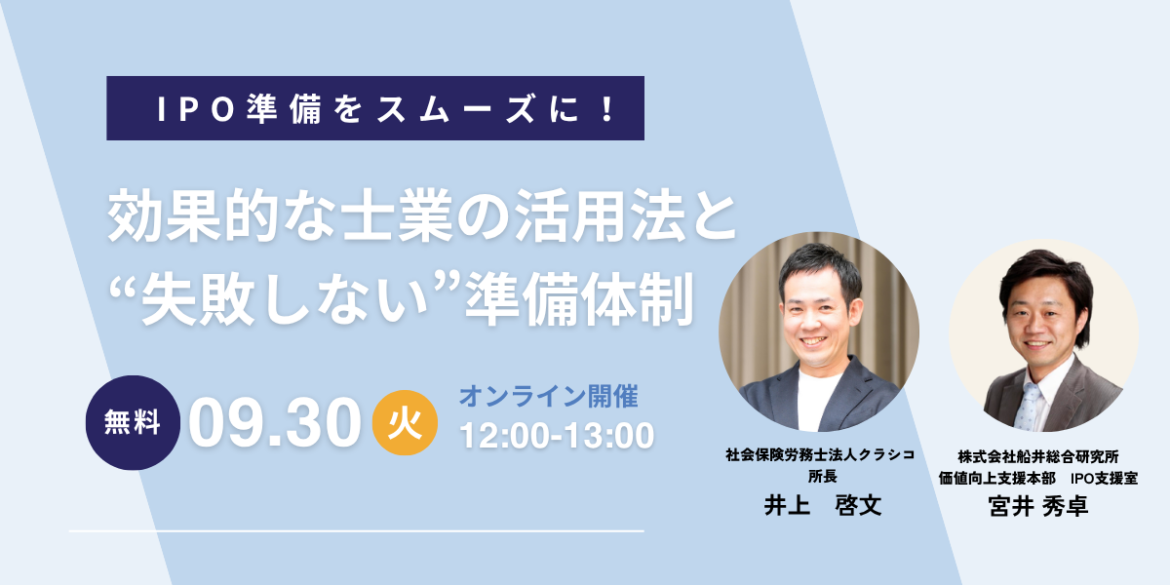 【9月30日開催】IPO準備をスムーズに!効果的な士業の活用法と”失敗しない”準備体制