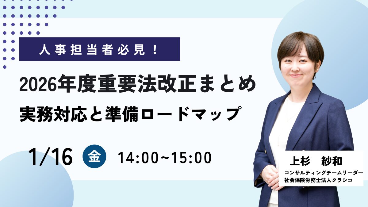 【2026年1月16日開催】2026年度 人事・労務の重要法改正まとめ 実務対応と準備ロードマップ