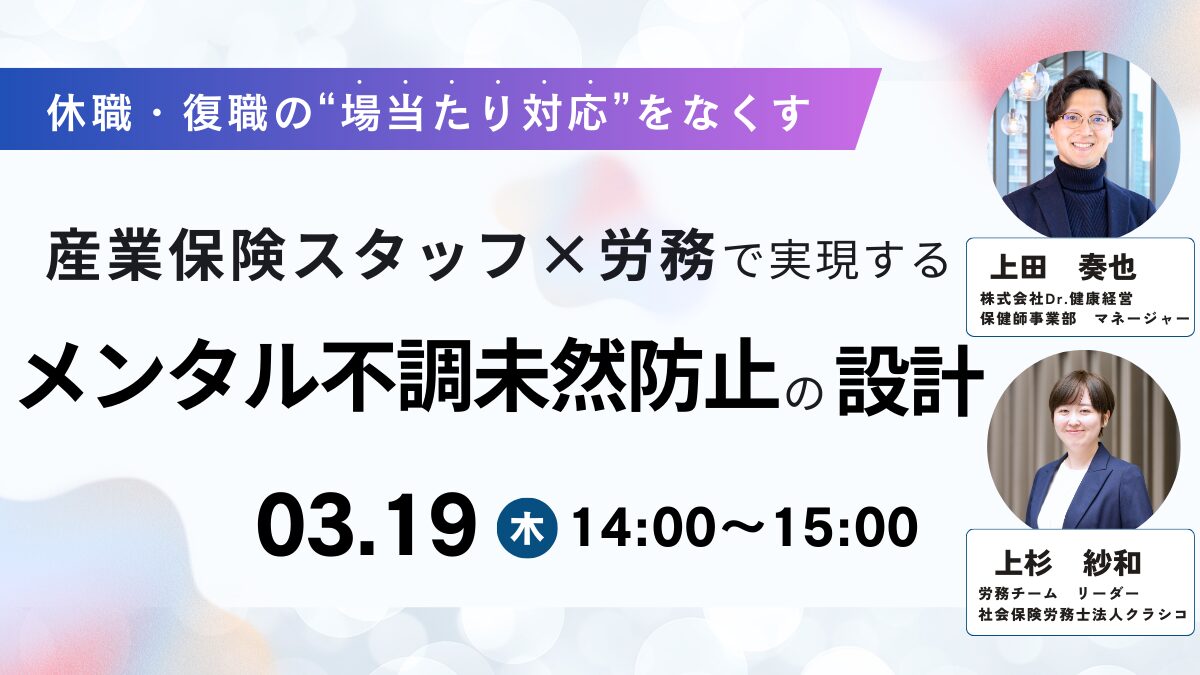 【3月19日開催】産業保険スタッフ×労務で実現するメンタル不調未然防止の設計