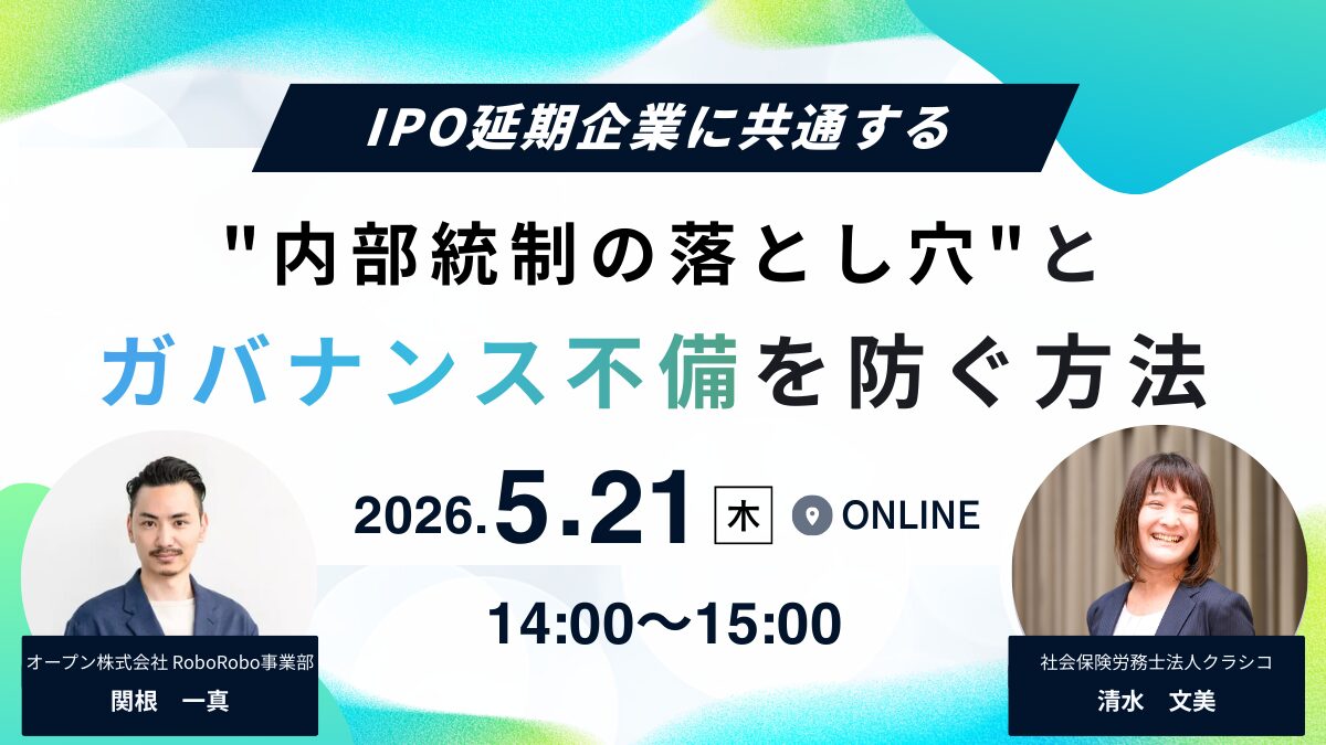 【5月21日開催】IPO延期企業に共通する”内部統制の落とし穴”とガバナンス不備を防ぐ方法